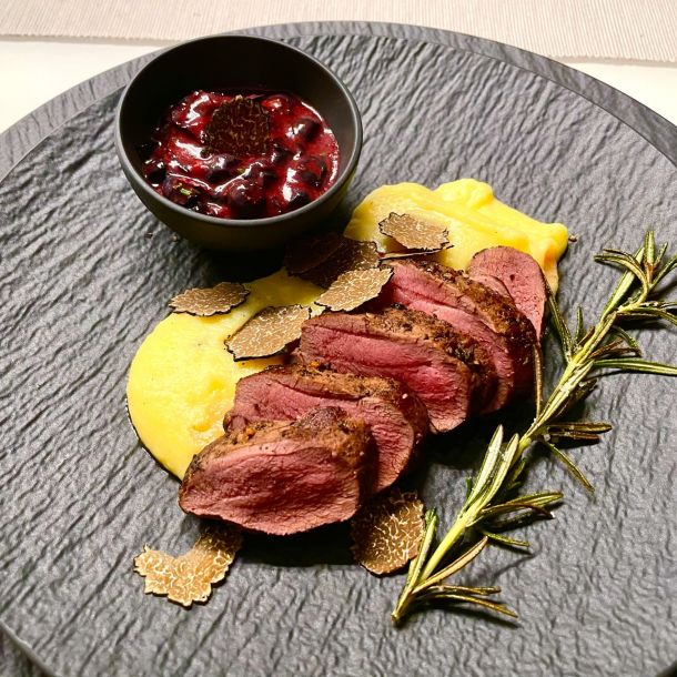 Kurz gebratener Rehrücken mit pikanter Heidelbeer-Salsa und Herbsttrüffel Keine Kommentare zu Kurz gebratener Rehrücken mit pikanter Heidelbeer-Salsa und Herbsttrüffel Dieser kurz gebratene Rehrücken wird mit einer fruchtigen Salsa aus Beeren, Senf und Portwein serviert. Weiterlesen